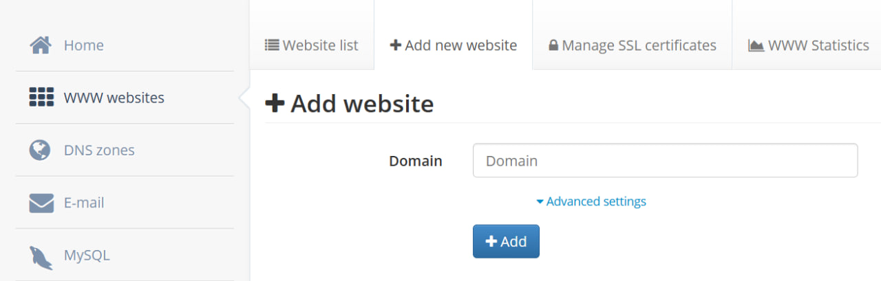 添加要使用的域名