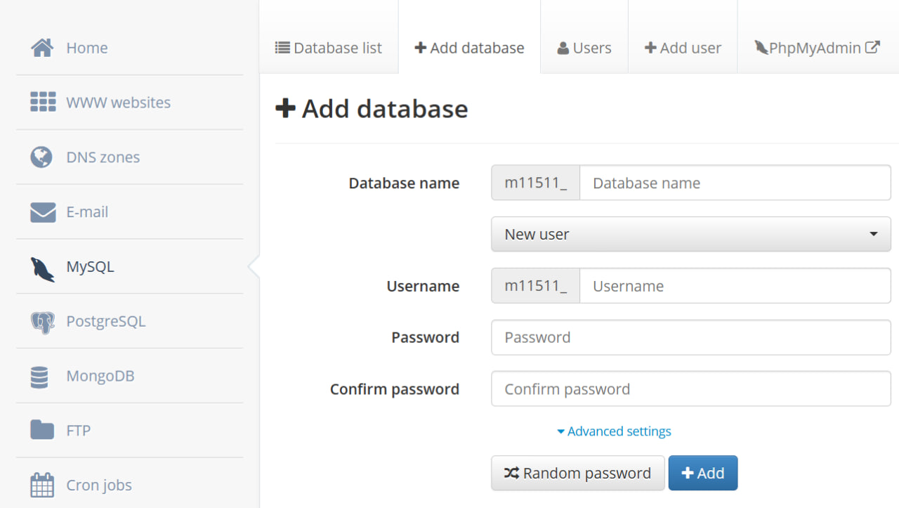 添加一个MySQL数据库