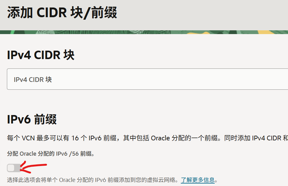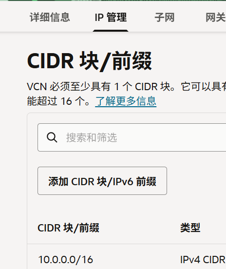 点击子网,在子网的IP管理页面下滑,找到添加IPv6前缀并按照提示添加。