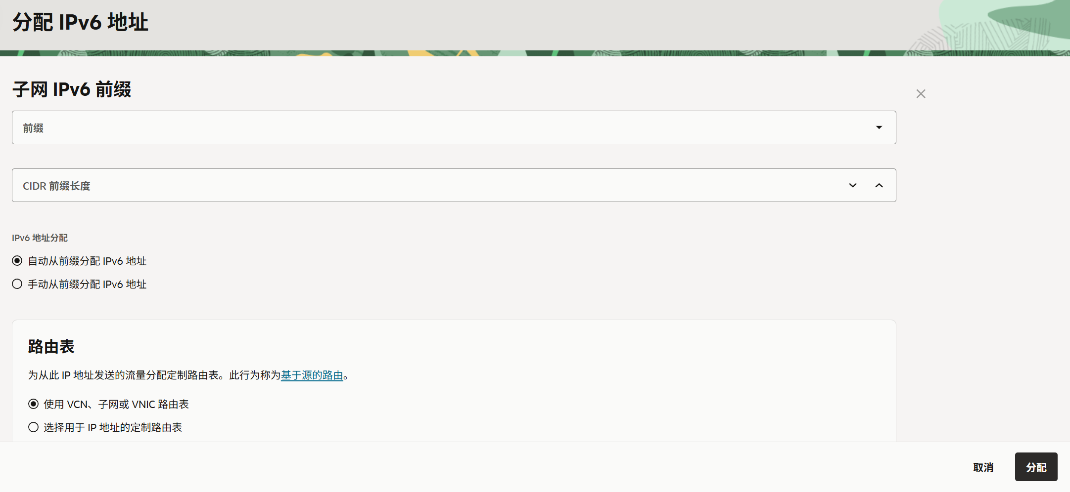 选择子网IPv6前缀,点击分配,可以根据需要预留该IP地址。